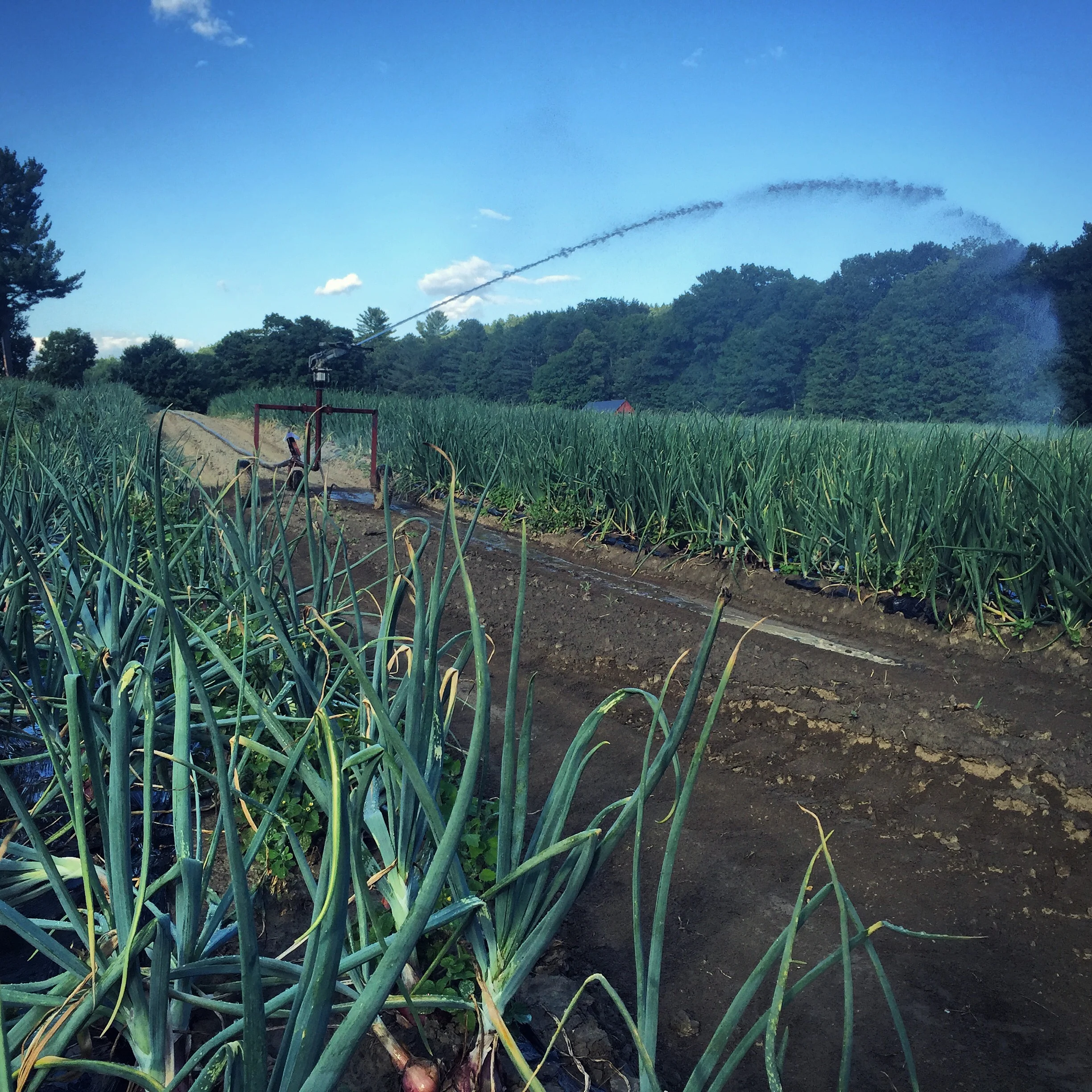 This has been a dry summer here in the Upper Valley. The weather has been so beautiful that no one has really noticed that it snuck up on us. We have been extremely dry here in Plainfield and Cornish, andmany ofyou probably have seen the solid set irrigation system or the traveling water cannons going from time to time when you drive by. We were very fortunate to get two unannounced storms: a timely one in June and another in Mid July. Those two storms saved our butt at a time we were about to start losing crops. The good thing abouta drought is it usually is great weather for harvesting things, and the lack of moisture often means a reduction of disease and weed pressure. So we are selling a lot of product this year, and it is not being overtaken by weeds or disease. By our standards, a very good year for us thus far, although we desperately need rain if we are to have a decent fall season.