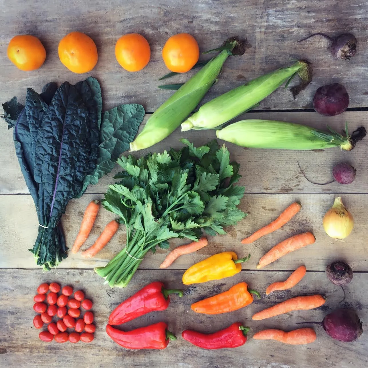 Corn - Kale - Celery - Yellow Onion - Beets - Carrots