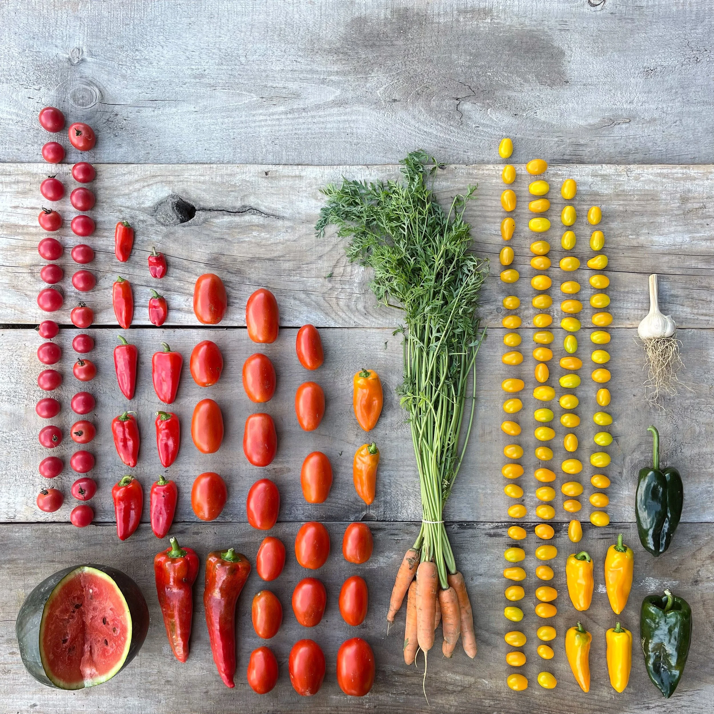 This week’s CSA share 100% reflects that crazy. Please join me as we get into it and go deep with tomatoes. By Sunday I expect everyone of your countertops to be tomato splattered and every dish piled high in your sink. But come JANUARY, you will be so pleased that you followed suit and took to heart the farmy foodie canny pro-tips.
